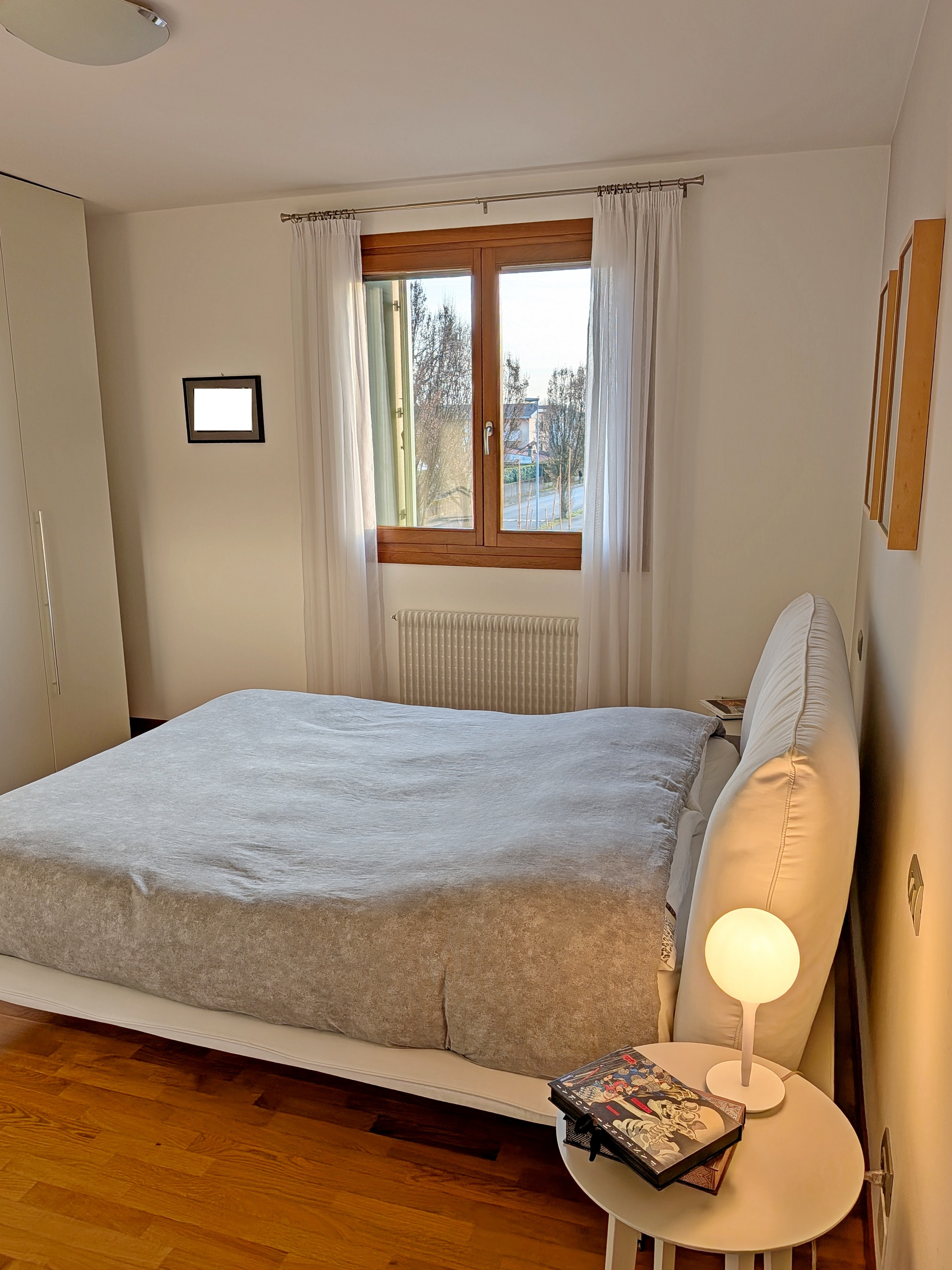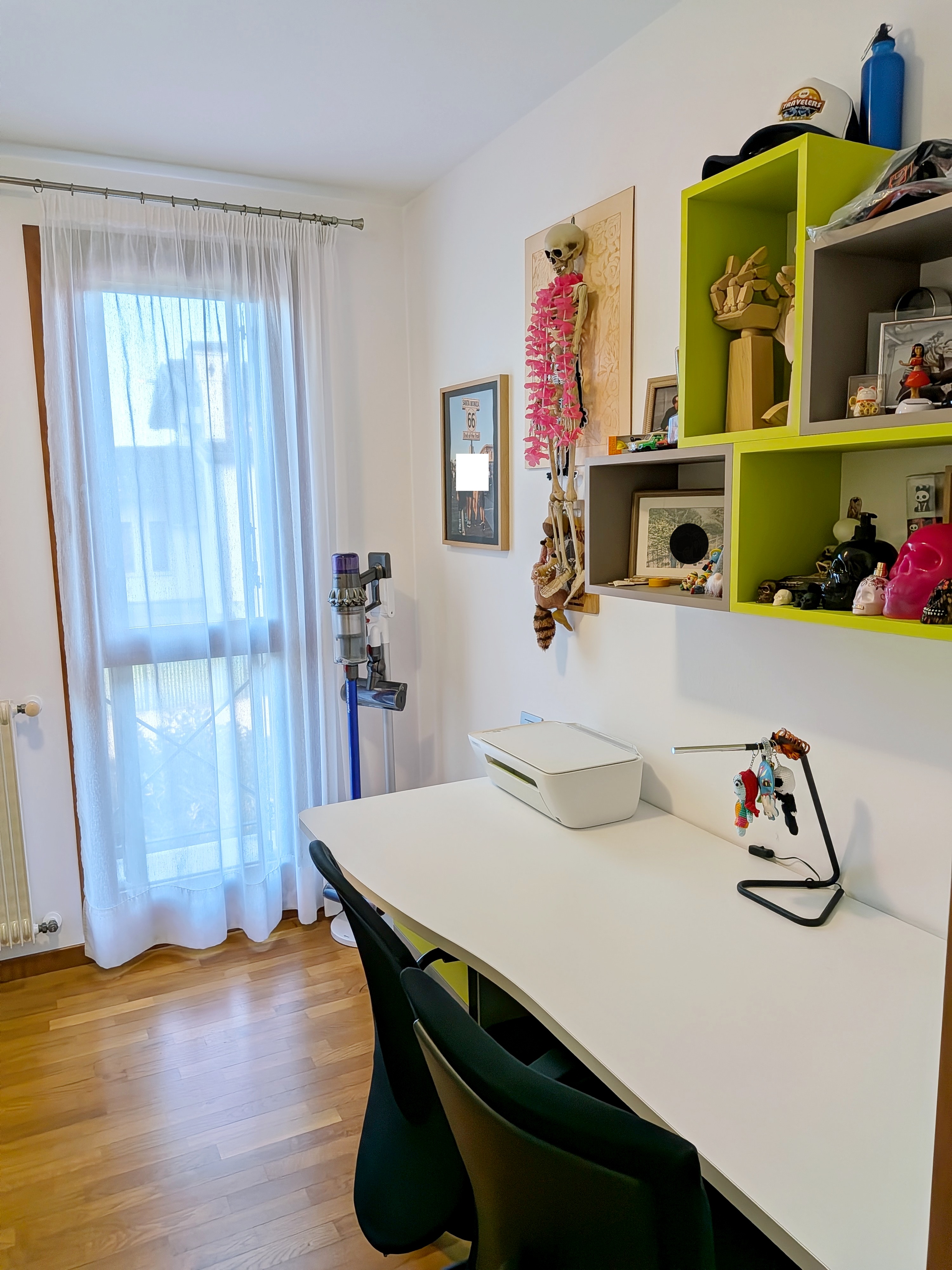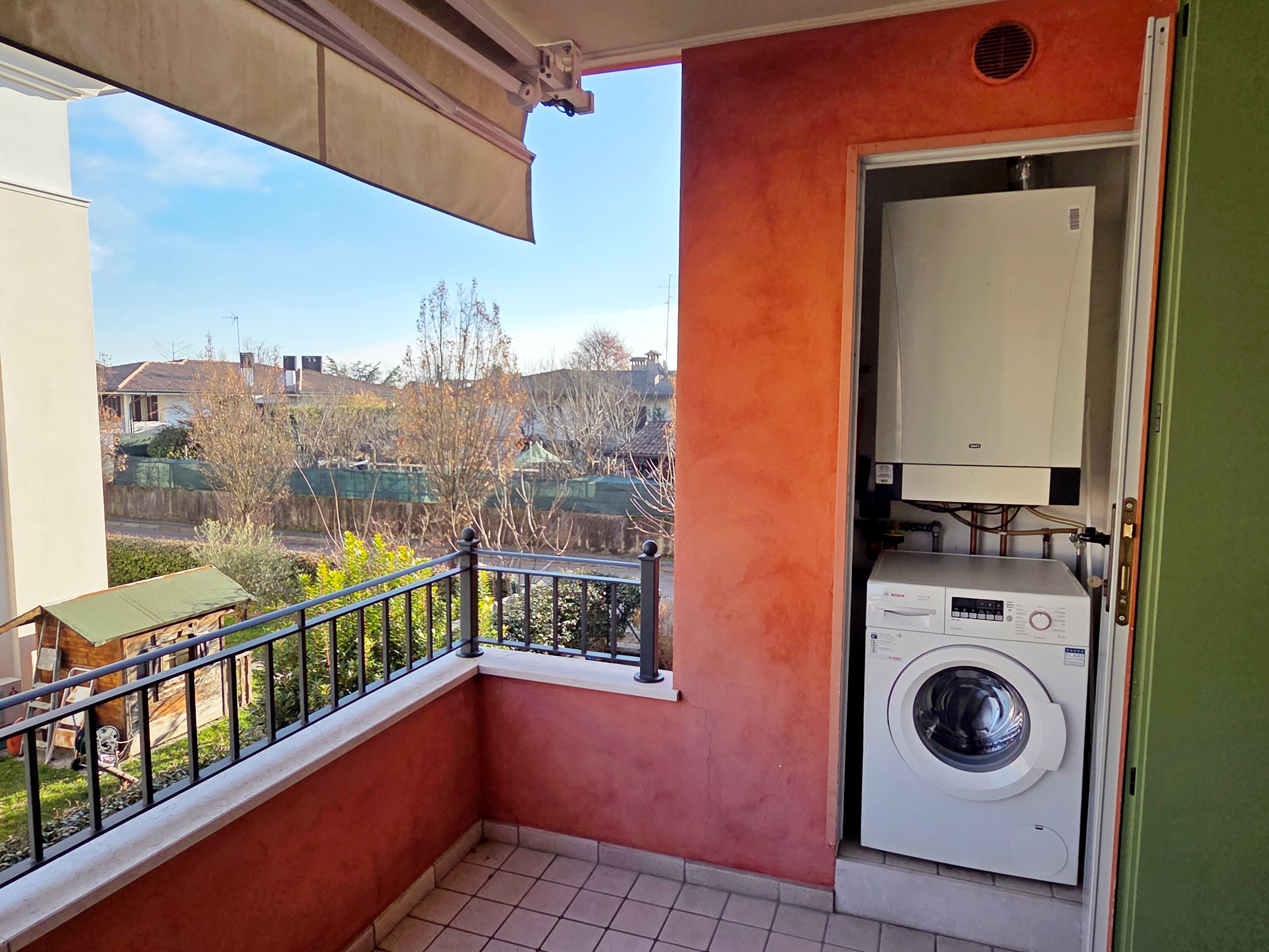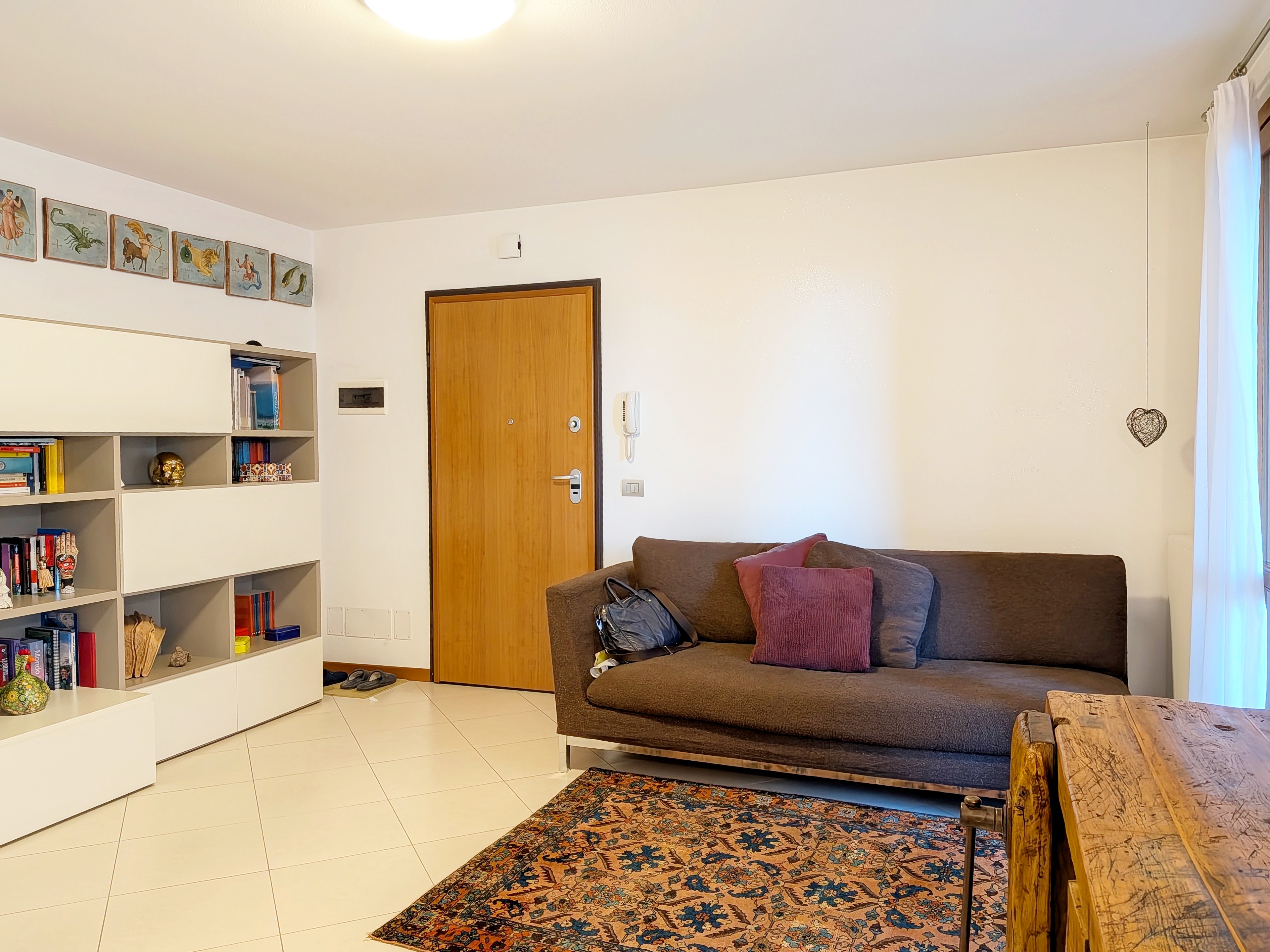 Appartamento termoautonomo in elegante palazzina con poche unità, in perfette condizioni di conservazione. Ingresso/soggiorno, cucina, camera matrimoniale, cameretta/studio, disimpegno con armadio/deposito, bagno con doccia. Ampio garage e cantinetta al piano interrato collegato con ascensore. Quartiere di recente realizzazione ordinato e ricco di giardini e aree verdi.