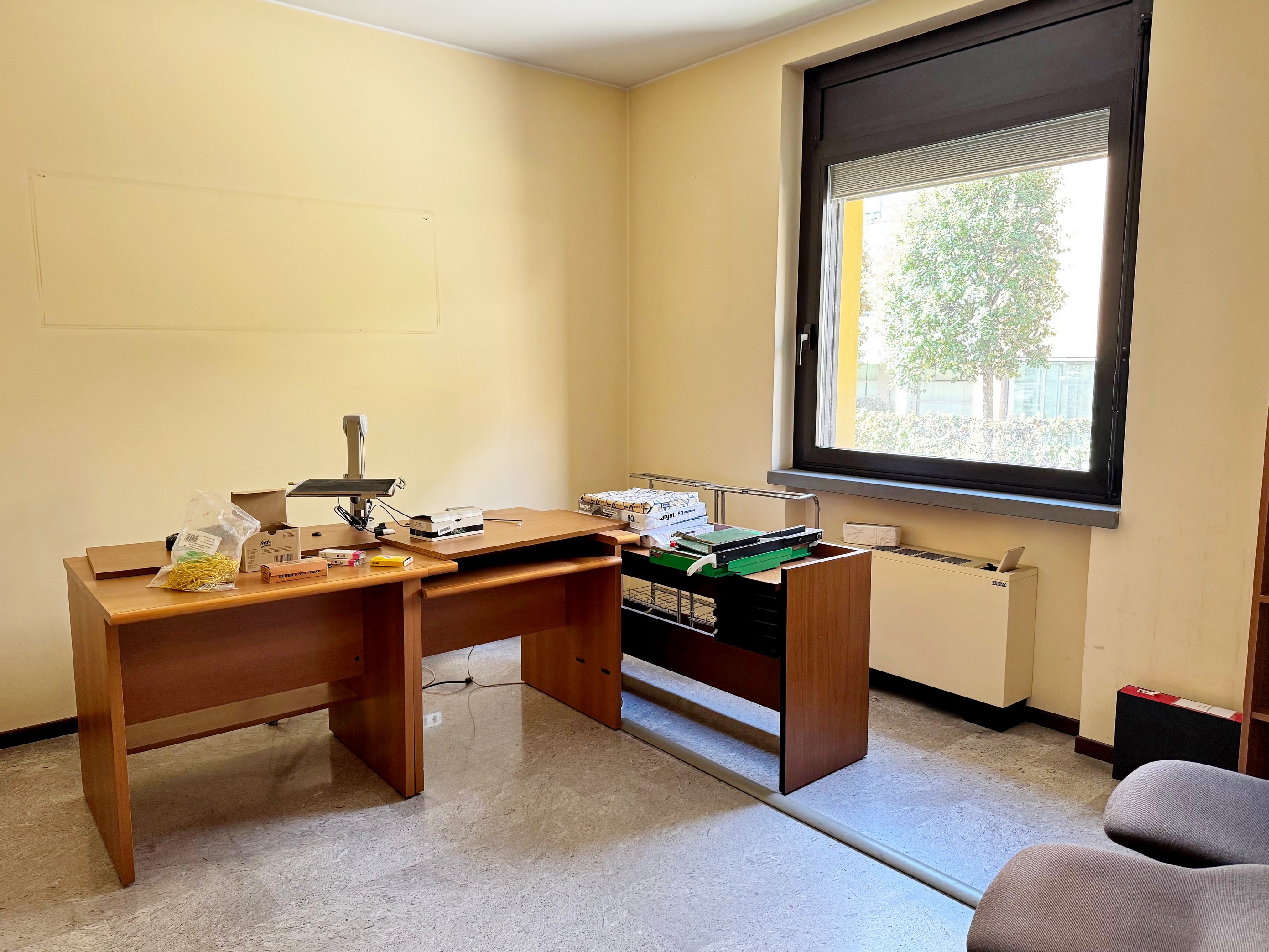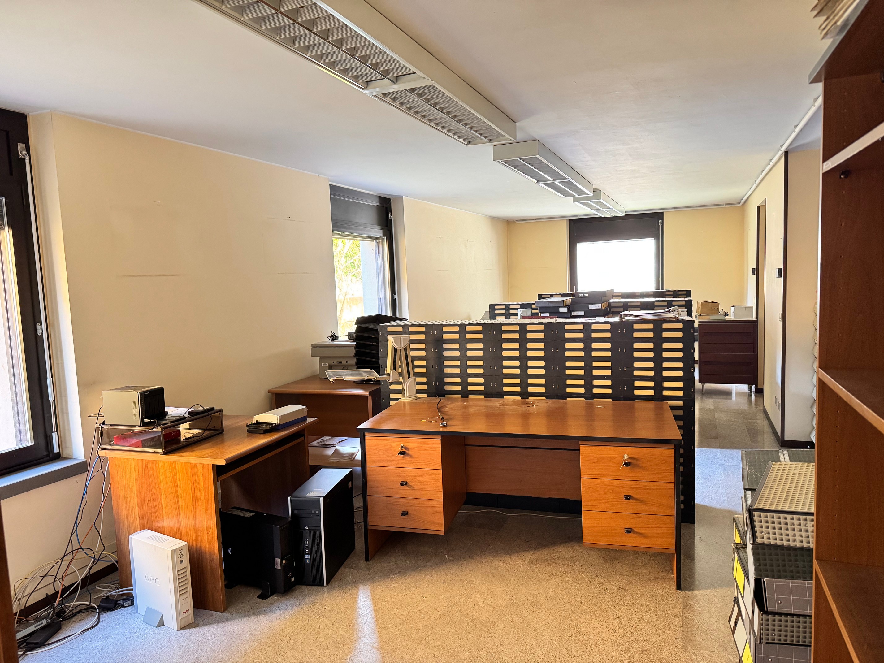 Ufficio C: 161 mq di spazio con ingresso, bagno, 2 stanze e pratico piano seminterrato (ex archivio).